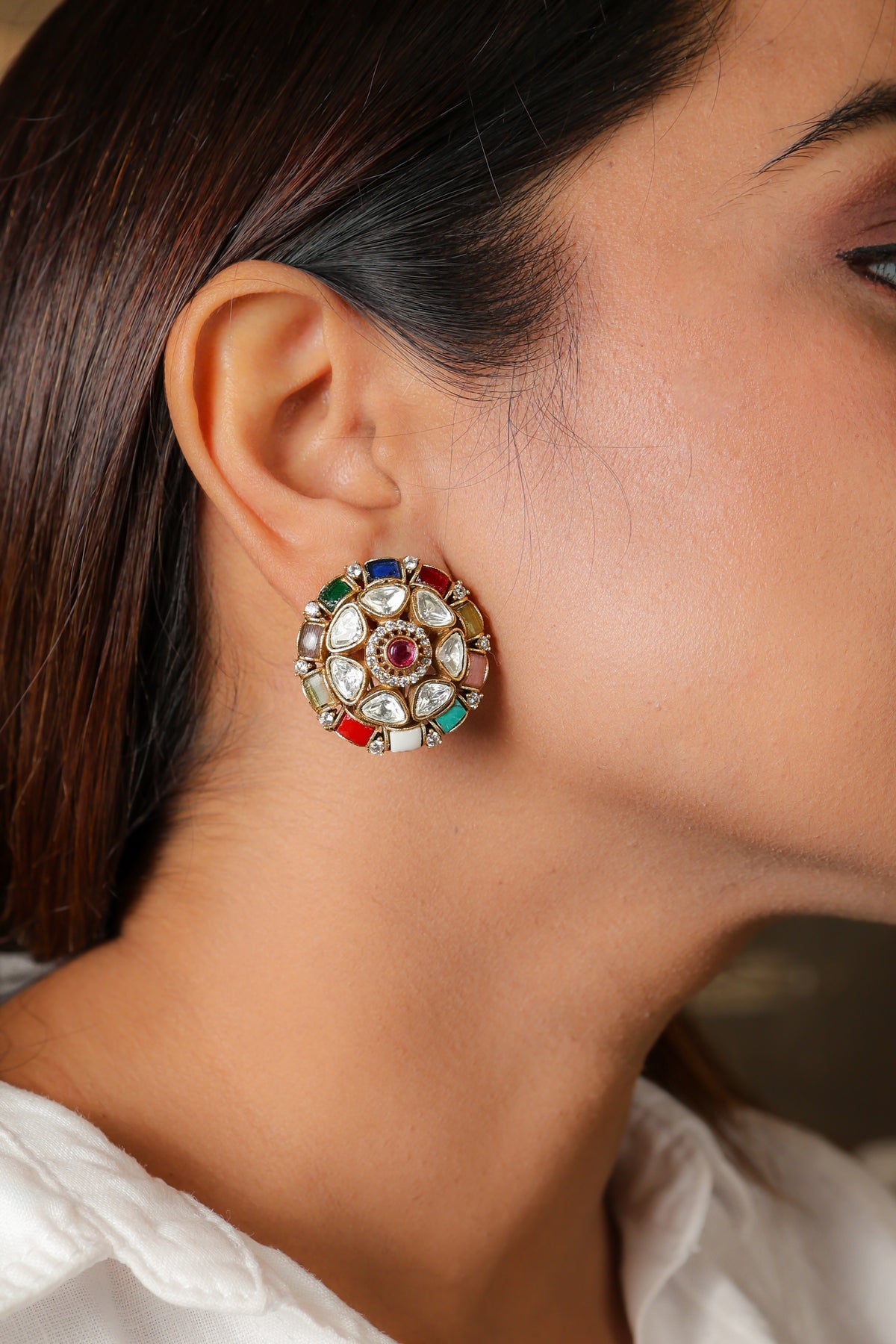 Make the Navratna Studs your festive essential — pair them with a silk saree, a regal lehenga, or a pastel chikankari kurta. Their vibrant palette adds the perfect pop of colour and royalty to any occasion.