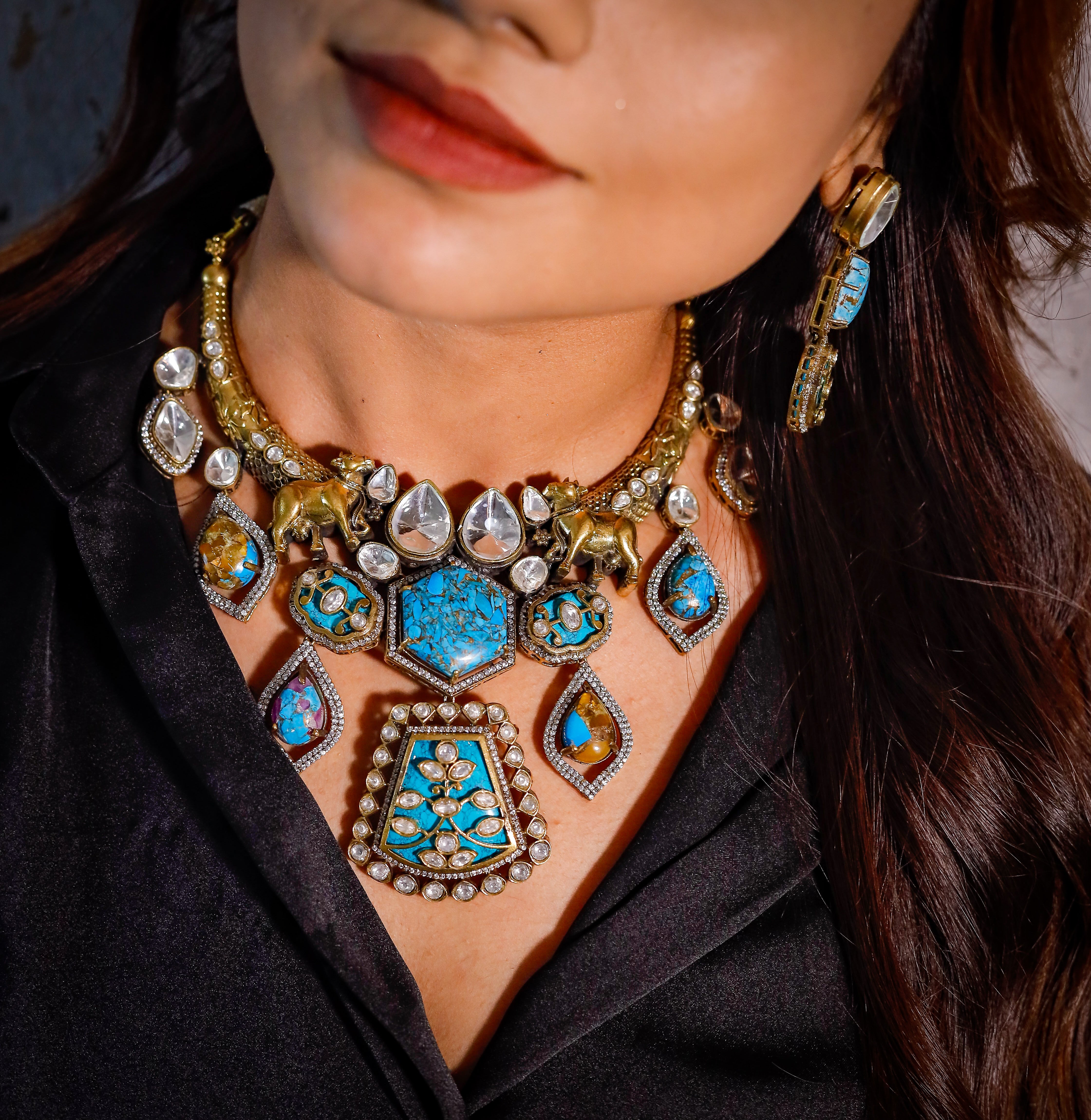 The necklace's traditional craftsmanship combined with a touch of modern elegance makes it a true masterpiece. Perfect for grand occasions and celebrations, the Idika Necklace will add a touch of divine grace to any ensemble.